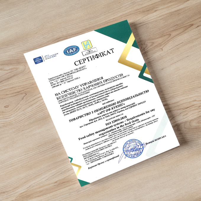 Производство компании «Арт оф кукинг» сертифицирован по стандарту пищевой безопасности ISO 22000:2018